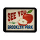 Un encantador imán refrigerador de la pared de viajes vintage de Brooklyn Park Minnesota con una hermosa manzana roja, junto con un divertido texto de estilo retro que dice "Nos vemos en Brooklyn Park"
