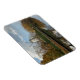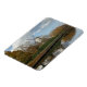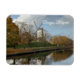 This lovely view of the Bruges Windmills in West Flanders, Belgium capture the serene beauty of Kruisvest and Bonne-Chière Mill, with vibrant autumn colours reflecting in the tranquil waters. This picturesque landscape scene is framed by the soft blue sky, and makes an excellent souvenir magnet of your trip to Belgium.