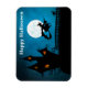una bruja volando sobre su palo de escoba pasando la luna llena con una casa oscura en el fondo y un gato en la valla 100% Personalización. Haga clic en el botón PERSONALIZAR para agregar, mover, eliminar, cambiar el tamaño o cambiar cualquiera de los tipos de letra o gráficos.