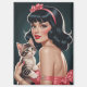 Imán Brunette Pin-Up con retrato de gatito lindo