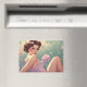 El ilustracion Brunette Pin-Up Pastel Flowers presenta a una mujer morena en una posición clásica de enganche, reclinándose con una pierna doblada y su cuerpo ligeramente girado. Su cabello está estilizado en rulos vintage voluminosos, enmarcando sus hombros. Lleva un vestido rosa pálido y estrépito que complementa la estética suave y femenina de la pieza. El fondo es un exuberante jardín de flores pastel, en el que predominan los tonos rosa y violeta, con delicadas hojas verdes. Las flores, como las peonías, crean un ambiente romántico y de ensueño, y la iluminación cálida y suave realza el encanto sereno y vintage de las obras de arte.