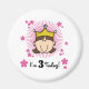 Brunette Princess con corona y flores rosadas de bonito diseño de tercer cumpleaños.