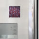 Un imán con una fotografía de un viejo envoltorio de burbujas sobre un fondo rojo.