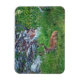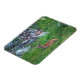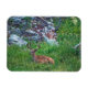 Fotografía de un ciervo macho tendido en hierba y flores silvestres que crecen entre una pared natural de piedra en un bosque. Esta fotografía de primer plano de un ciervo macho es la misma en mi fotografía titulada "Un dólar descansa en un río en cascada". Imagen Copyright© 2018 Kimberly J Tilley.