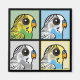 En este diseño de estilo pop artístico se exponen cuatro diferentes tonos comunes del Budgerigar. ¡Es una idea de regalo perfecta para cualquier amante del Budgerigar! ¡Puedes personalizar este regalo! Mueva el diseño, cambie el color o estilo del producto, agregue texto o imágenes — ¡hágalo el suyo!