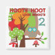 Búho camisetas de cumpleaños 2, trajes para el cuerpo, tazas, imanes, agujeros, posters, bolsas, y más con un búho, muchos árboles, y texto que dice "¡Hooty Hoot Look Whoo's 2!"