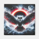 Majestuoso búho desplegando sus alas bajo un eclipse celestial brillante.