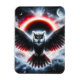 Majestuoso búho desplegando sus alas bajo un eclipse celestial brillante.