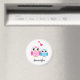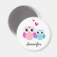 Un imán de frigorífico o locker lindo y personalizado con dos búhos, uno rosa más grande y otro azul más pequeño. Nombre personalizado u otro texto. Diseño divertido y colorido para chicas y mujeres.