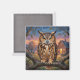 Un imán que presenta un impresionante búho real, representado en un estilo de pintura al óleo impasto rico y grueso. Las texturas vibrantes y el cálido fondo de puesta de sol crean una atmósfera acogedora y rústica que es perfecta para los amantes de la naturaleza y los entusiastas del arte por igual.