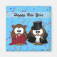 Una pareja de búhos listos para celebrar Año Nuevo.