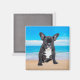 Imán Bulldog francés sentado en la playa