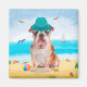 El perro lindo sentado en la playa es un regalo perfecto para alguien que ama esta raza de perro.