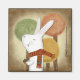 Un caprichoso conejo blanco sostiene una bellota mientras su bufanda sopla en la brisa. El fondo está formado por tres árboles de colores otoñales con diferentes motivos en blanco. Imagen linda para cualquier amante de los animales de bosque. Diseño original de Christie Black de Creations from the Heart.