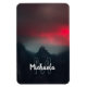 Landscape photograph of an unreal sunset taken at lake Lago di Fusine, Italy. Red color is a bit exaggerated but standing there in real life it really felt like this. In a short moment the sun broke through the fog and just as fast disappeared. With a personalizable monogram in the mountains.