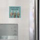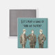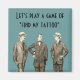 Este imán presenta una imagen vintage de tres hombres bien vestidos, en un fondo verde azulado, con el texto: "Vamos a jugar un juego de encontrar mi tatuaje".