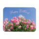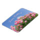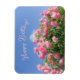 Este imán tiene un arbusto rosa rosa rosa bajo un cielo azul - un maravilloso motivo para los deseos de cumpleaños y más, para cada rosa o amante de las flores! Personalizable de texto y color en la parte posterior.