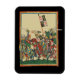 Ilustracion del manuscrito medieval Manesse del Codex del siglo XIV. Caballeros cargando contra la batalla. Gran regalo para alguien interesado en la historia y el arte de la Edad Media.