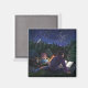El arte nocturno estrellado de Traci Van Wagoner print, posters, accesorios y regalos presenta nuestra pintura original de dos niños y su perro negro grande acampando bajo las estrellas leyendo un fantástico libro alrededor de un incendio en un campamento sobre caballeros y dragones. La magia de la historia se desliza hacia el cielo estrellado para mostrar un caballero y un dragón en un eterno baile nocturno de estrellas. Disfrute de un campamento nocturno de verano en las montañas.