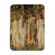 Magnet con la tapicería de William Morris El armamento y la salida de los caballeros (1891-4). Los Caballeros de la Mesa Redonda se sientan a sus caballos en un bosque afuera de un castillo. Hermosas mujeres entregan a los caballeros sus armas y escudos. Un regalo maravilloso para los entusiastas de Arthuriana y coleccionistas de arte victoriano.