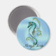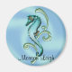 Este diseño de bonito, llamado "Seahorse in the Seaweed", tiene un ambiente dulce y caprichoso. Este ilustracion fresco comenzó la vida como un dibujo y estaba coloreado en una fototienda. El fondo es un torbellino de azul que le da un aspecto de agua dulce. Muestra un caballito de mar azul, turquesa y dorado con un solo tallo de algas detrás. Esto sería una adorable adición a la habitación de su hijo o a la decoración de su casa.