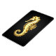 Artístico, poligonal, caballito de mar de chispa, Relieve metalizado dorado sobre fondo negro.
