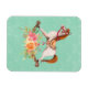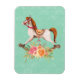 Imán flexible con una encantadora y fantasiosa imagen de un mecedor a la antigua con un ramo de flores de bonito rosa y amarillo. El fondo es un patrón de damasco de color verde claro.