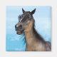 Representación digital 3D de un lindo y sonriente caballo grulla con ojos azules sobre fondo azul del cielo. Un regalo perfecto para todos los que aman la diversión y se ríen