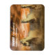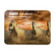 Este imán tiene una imagen de caballos salvajes corriendo en el océano cerca de la costa contra una vista espectacular del cielo, y una cita de una persona desconocida: El trueno es el sonido de los pepitas en el cielo.