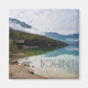 Imán fotográfico de recuerdo con un paisaje con una cabaña de madera a orillas del lago Bohinj con un reflejo del bosque con árboles en colores otoñales en el agua fija del lago cerca de Bled en Eslovenia con el texto 'Bohinj, Eslovenia'.