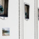 Imán fotográfico de recuerdo con un paisaje con una cabaña de madera a orillas del lago Bohinj con un reflejo del bosque con árboles en colores otoñales en el agua fija del lago cerca de Bled en Eslovenia.