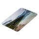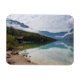 Imán fotográfico rectangular de un paisaje con una cabaña de madera a la orilla del lago Bohinj con un reflejo del bosque con árboles en colores otoñales en el agua fija del lago cerca de Bled en Eslovenia.