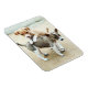 Una bonita fotografía de un par de pequeños cachorros jugando juntos en la playa.