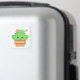 Bebé adorable cactus verde con una cara sonriente kawaii linda, una flor rosa y amarilla y un corazón de amor rosa dentro de una burbuja de diálogo. Está sentado en una maceta con los brazos abiertos para abrazos.