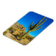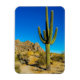 La fotografía muestra un gran cactus de saguaro armado a lo largo de una ruta de senderismo que conduce a una montaña de rocas esparcida por el desierto de Sonoran.