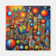 A.I. creó una composición abstracta geométrica y abstracta sin sentido de planetas, estrellas, líneas, formas y colores en un arreglo que complacía los sentidos del artista.