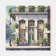 Perfecto regalo para los amantes del viaje y del café. Este cuadro muestra una acogedora cafetería situada en Nueva Orleans, que combina la simplicidad moderna con el encanto histórico de la ciudad. La cafetería cuenta con grandes ventanales enmarcados por un hierro forjado intrincado, una colorida fachada de ladrillo y un signo minimalista encima de la entrada. Las cestas de flores colgadas y la exuberante vegetación aportan un toque fresco y acogedor, mientras que una pequeña zona de estar al aire libre con mesas y sillas de madera modernas rodea la acera de adoquines. El telón de fondo muestra la arquitectura única de inspiración francesa de Nueva Orleans, que incluye balcones ornamentales y toques de la vibrante vida callejera. La paleta clara, luminosa y limpia de blancos crujientes, los tonos cálidos de ladrillo y los verdes vibrantes resalta el ambiente animado y relajado, perfecto para tomar un café en este pintoresco entorno.