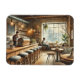 La pintura acuática representa el cálido y acogedor interior de una pequeña cafetería de Vancouver. El mobiliario de madera natural con cojines de lino mullido está distribuido en un ambiente acogedor, con paredes de ladrillo visto que le confieren un encanto rústico. Las cadenas de luces de hadas y las bombillas de Edison proporcionan un resplandor suave y dorado. Una pequeña biblioteca repleta de novelas y macetas de plantas aporta un toque acogedor a un lado de la sala. En el mostrador, un barista con una camisa a la plancha prepara café, con el vapor subiendo con gracia. Cerca de una ventana moteada por la lluvia, un hombre con un jersey de punto gris disfruta de una taza de té chai, mientras que al otro lado de la habitación, dos amigos comparten una rebanada de pan de plátano en una mesita. Los tonos tierra de marrón y verde se mezclan armoniosamente con la suave luz natural que entra, creando una tranquilidad y un ambiente acogedor