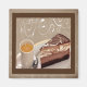 ¿A quién no le gusta el chocolate de ninguna manera? Aquí tenemos una taza de café humeante con una deliciosa rebanada de tarta de queso de chocolate desmentido. Está situado en un marco marrón oscuro sobre un fondo de vapor de cacao con un embellecimiento. Diseño digital estilizado para saborear.