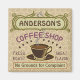 Este imán cuadrado con temática de café es perfecto para quien dirija su propia cafetería o tenga una temática de café en la decoración de su propia cocina. Hecho en tonos retro marrón, verde, morado y con toques de naranja, este diseño inspirado en el espresso/capuchino presenta una taza sobre un platillo, dos carteles de texto personalizados y las palabras "Cafetería / asado fresco / gran sabor" en morado. La taza está humeante y la pancarta superior tiene movimientos que imitan el humo. Todo descansa sobre un fondo liviano de café-frijol. Utilice las plantillas para agregar fácilmente su nombre. También puede cambiar el lema final si lo desea, que actualmente dice "Sin motivos para la queja". Si necesita cambiar el tamaño del texto para ajustarlo, haga clic en "Personalizar". Tome una taza de Joe y disfrute de su imán de café personalizado.