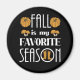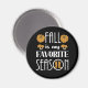 Pequeña calabaza marrón, hongos, ilustraciones botas de lluvia y el texto grande: La caída es mi temporada favorita.