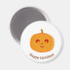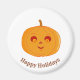 Cara de calabaza linda en imán redondo de fondo blanco. El texto se puede personalizar.