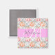 Imán monograma giratorio con calabazas de color rosa y melocotón floral primavera / otoño y fondo blanco y gris. Su nombre y monograma personalizados están escritos en un elegante guión gris y blanco con letras a mano con un fondo rosado. Puede cambiar el color del texto y el estilo y el tamaño del tipo de letra mediante la opción personalizar.