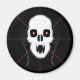 Calavera resplandeciente sobre un fondo negro de círculo de alambre de púas.
