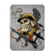 Esta es una imagen verdaderamente malvada de un cráneo o esqueleto fumando un cigarro con su casco militar en el que aviones están arrojando paracaidistas y bombas a su alrededor. Recomendado para veteranos militares. Arte del desaparecido Al Rio.