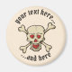 Boceto de dibujo animado de calavera beige con corazones. Dos campos de texto en círculo.