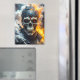 Desata el poder de esta impresionante obra de arte, que presenta un cráneo formidable con ojos brillantes, listo para la batalla contra las fuerzas de la perdición. Vestido con cuero negro elegante y armado con un arma de fuego, la figura emana intensidad y resistencia. Llamas ardientes, humo y cenizas giran en el dramático fondo, amplificando el sentido de acción y peligro. Perfecto para coleccionistas que aprecian visuales audaces y dinámicos y temas oscuros y atmosféricos, esta pieza seguramente hará una declaración poderosa en cualquier espacio.