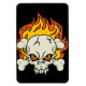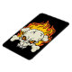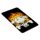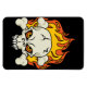 Calavera y huesos cruzados con colmillos y muchas llamas coloridas.