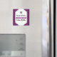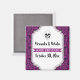 Calaveras damascar morado, negro patrón y banner boda Halloween Guardar el imán de la fecha. Este elegante diseño presenta un patrón de flores y cráneo de damasco, un marco en el centro, un cráneo negro y una pancarta morada. Un diseño contemporáneo pero elegante con un tipo de letra de estilo vintage. Elegantemente diseño espeluznante, perfecto para bodas góticas o de Halloween de otoño o invierno. Es una plantilla de personalizable completa y forma parte de un conjunto de bodas.