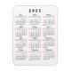 Pequeño e sencillo imán de calendario 2025 de año completo en español con tipografía en negro y rojo y meses en letra de guión.